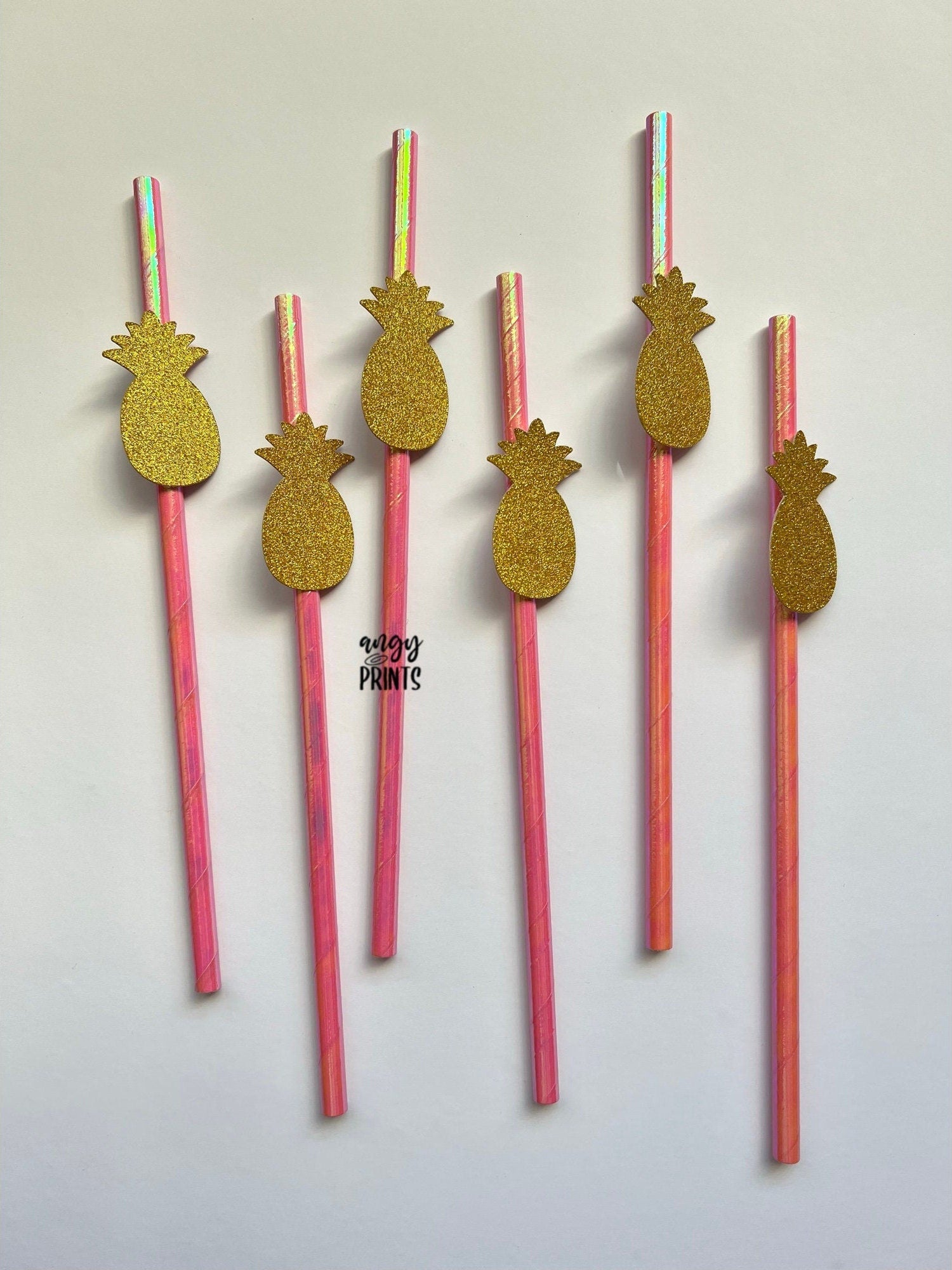 Final Fiesta Pineapple Tropical Theme Holographic Pink Straws w Glitter Gold Pineapple Confetti for Bachelorette Party, Birthday,