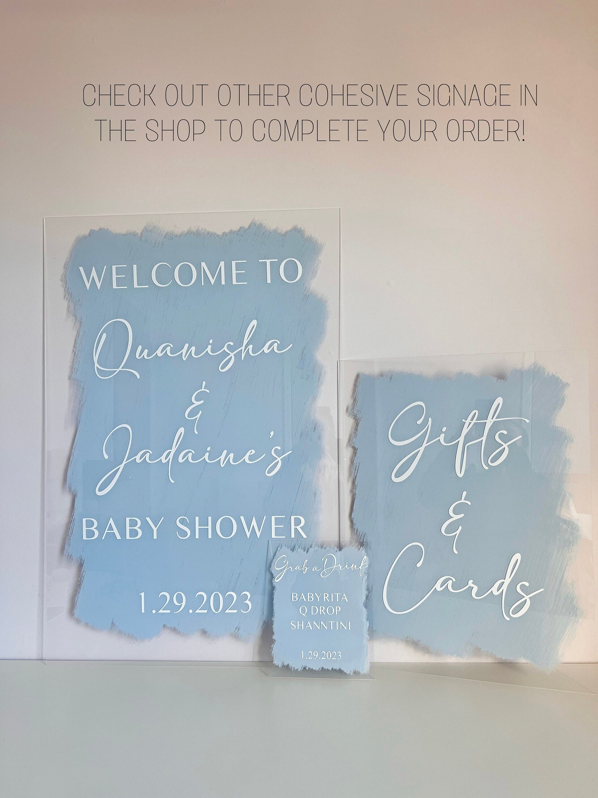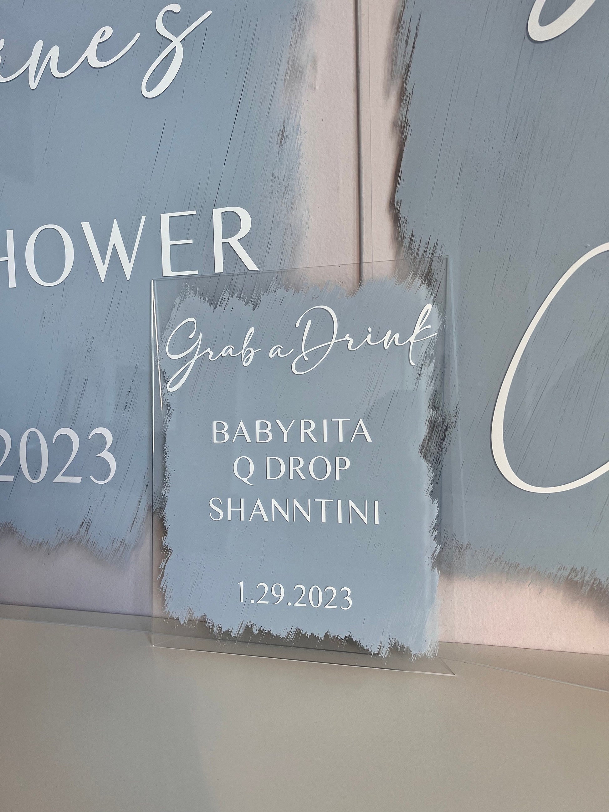 Grab a Drink Menu Tabletop Sign Acrylic Dusty Blue for Baby Shower, Wedding, Bridal Shower, Birthday, Anniversary | Clear Acrylic Sign