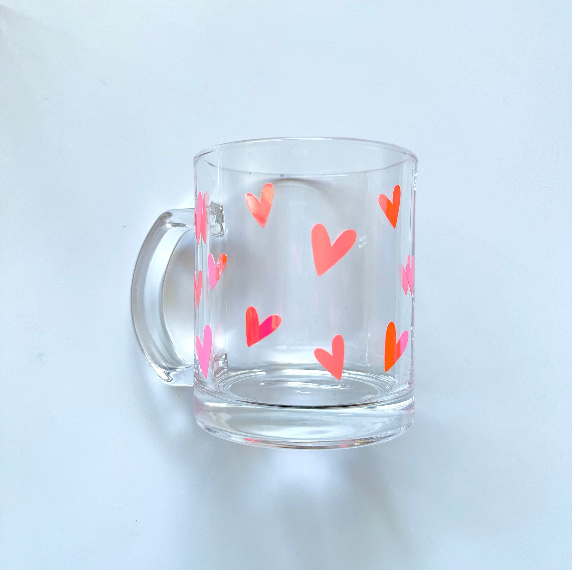 Valentines Day Clear Glass Heart Mug for Coffee Tea | Galentine, Gifts for Her, Cute Heart Cups